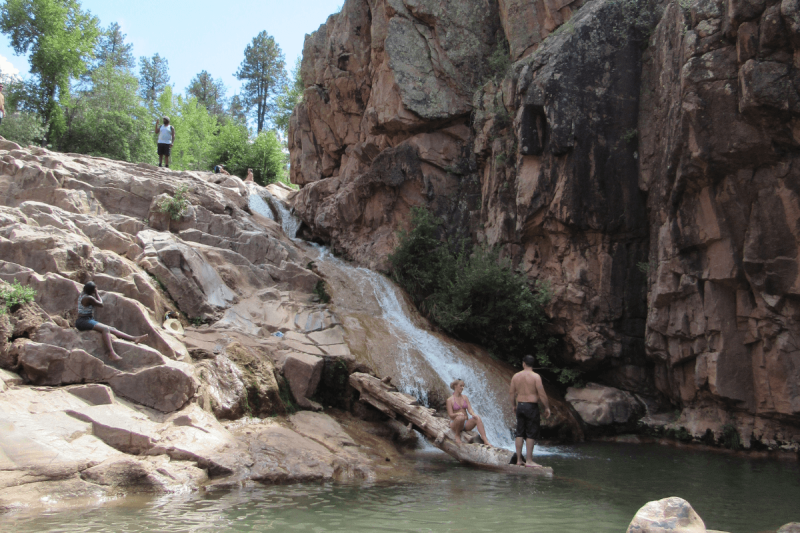 You can access Camp Creek Falls via the Blue Wash Trail. The trailhead is located just off North Cave Creek Road. The roughly 3.5-mile out-and-back trail in the Tonto National Forest is relatively flat and leads to a surprising waterfall.