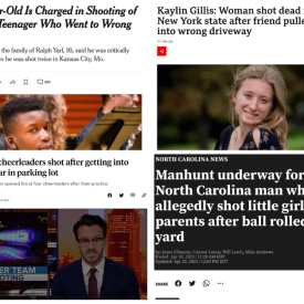 Knocking on a door, turning your car around in a driveway, or chasing a ball into your neighbor’s yard can get you shot now, apparently.