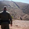 A man is halted climbing the US-Mexico border wall. Under new Trump rules, US troops sound the alarm