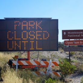 Dozens of tourists were turned away at Montezuma Castle National Monument on Wednesday with a “park closed until further notice” sign and gated-off entryways.