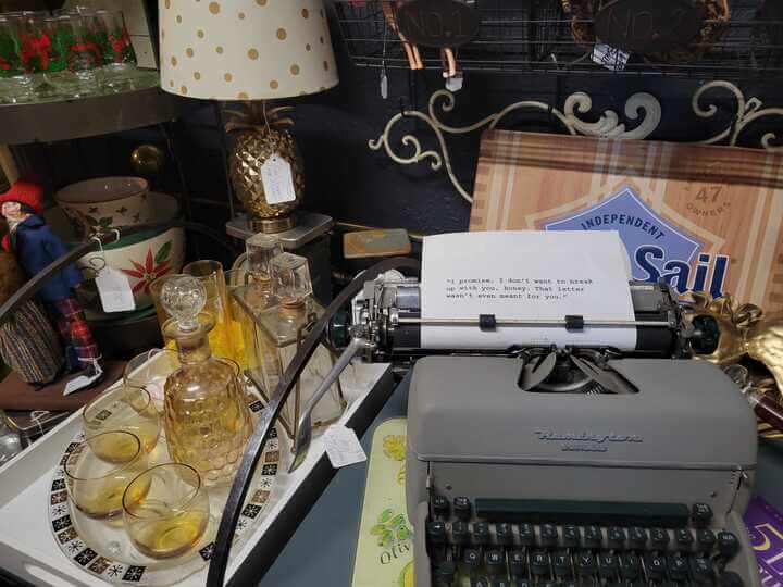 While browsing the aisles, I found various shelves full of kitchenware featuring teacup sets, ceramic pepper shakers and plates, and a cabinet with ceramic collectable tiki mugs and cups. Beneath the glistening antique lamps are various wood and glass counters with retro and old-school goodies like a working Remington typewriter, decorative glass decanters, shiny liquor shakers, an entire rack of Hawaiian button-ups, and beautifully polished antique mirrors. And although it may seem like a bit of a maze upon first glance, Michael Todd’s Treasures is a navigable shop of well-priced decorations and retro novelties once you figure out where to search.