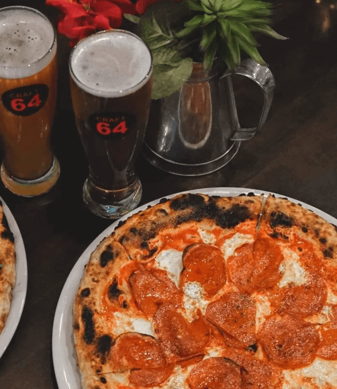 Pizza crust is made in-house with a Hayden Mills heirloom variety wheat flour. Craft 64 also makes its mozzarella in-house and estimates it makes about 7,200 pounds of mozza’ annually.