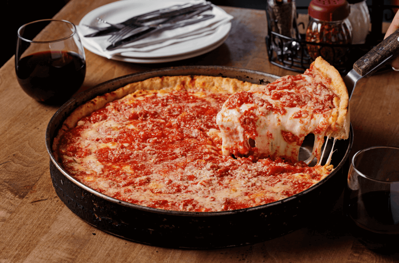 The Chicago classic comes with Lou’s lean sausage, extra mozzarella cheese, and tomato sauce on its signature buttercrust. Customers also can build their own or even order a white pizza.
