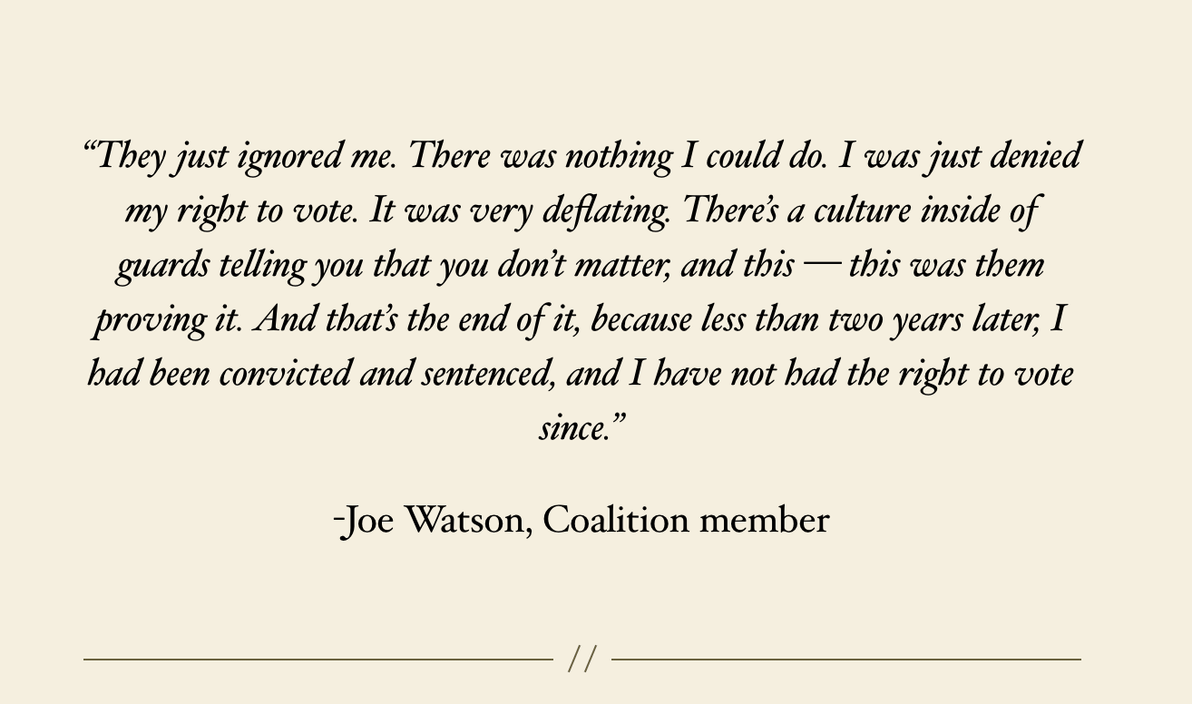 The Arizona Coalition was informally created in 2018 to make sure incarcerated voters received their ballots. Since then, the organization has grown to advocate for systemic and meaningful jail-based voting policy reform across Arizona.