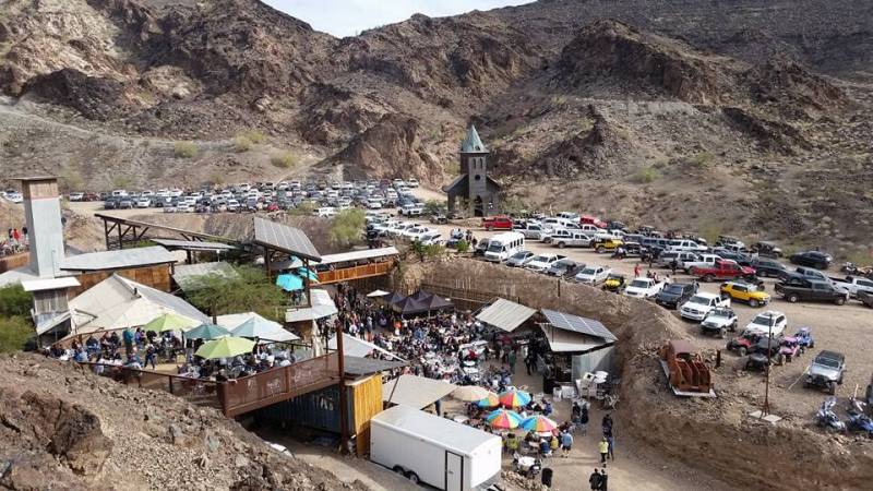 Your reward for venturing to such a hard to reach place? A bar unlike any other. The bar is surrounded by the Buckskin Mountains on land that once was a mining camp. Once you reach the bar, you’ll find a full-service solar-powered bar, a full-service restaurant, a church made of steel (yes, really), an outside bar, a cooking area, a stage, and a dance floor. Look forward to a lively atmosphere. Behind the bar is a horseshoe pit, and live bands also play most weekends. Dogs are allowed outside, but not inside.