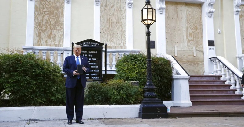 “There was no reaching out, no sense that it would require some sort of authorization before using the church as a backdrop in that way,” Rev. Mariann Edgar Budde, told NPR. Budde is the Episcopal Bishop of Washington, which has oversight of St. John’s Church, located steps from the White House and has hosted every previous administration since James Madison.