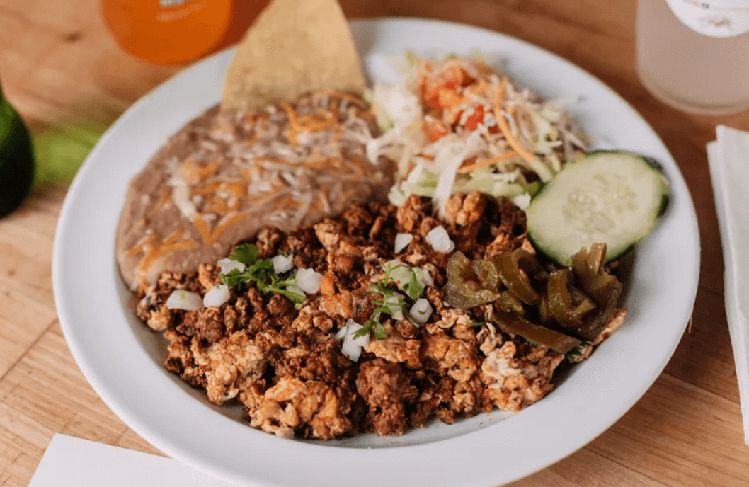 Popular brunch dishes include the build-your-own breakfast burrito with hearty protein burro options to choose from—like bacon, beans, carne asada, cheese, chorizo, egg, ham, machaca, or potatoes—and Cocina’s popular chilaquiles combo plate that includes corn tortillas with the choice of red or green sauce, a side of beans, and a fried egg.