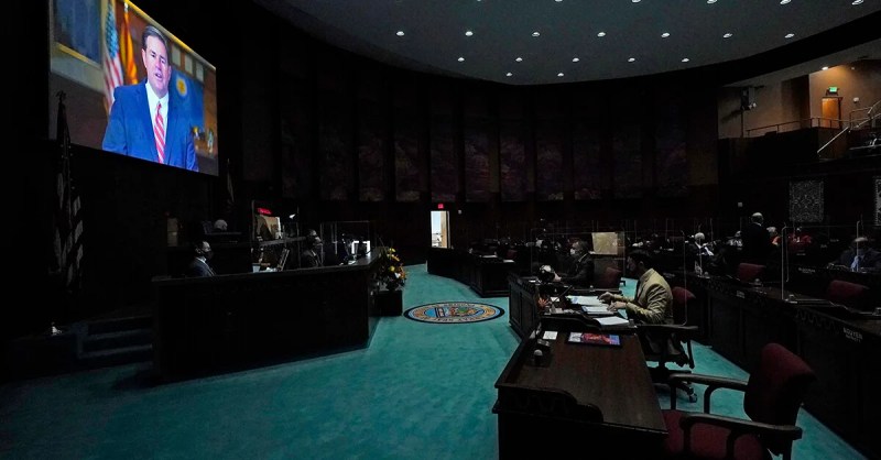 In his seventh and shortest state-of-the-state address as governor, Ducey spoke directly to a camera from his office in the state Capitol.