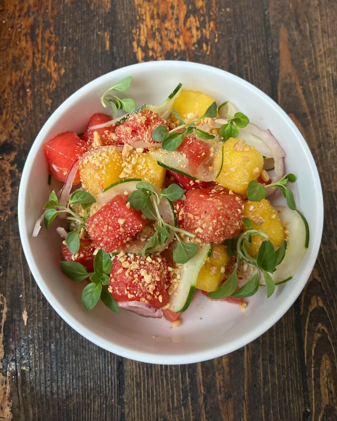 Dessert options include coconut rice pudding and a triple chocolate cast iron cookie. The creativity on the food menu extends to the drinks program too. Enjoy libations like matcha libre, matcha, unfiltered sake, vodka, lime, and aguafaba that’s also available in a nonalcoholic version.