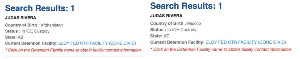 On Oct. 24, the ICE detainee tracker showed Rivera as a national of Afghanistan. After The Copper Courier reached out to ICE, however, the tracker was corrected to show him as a Mexican national.