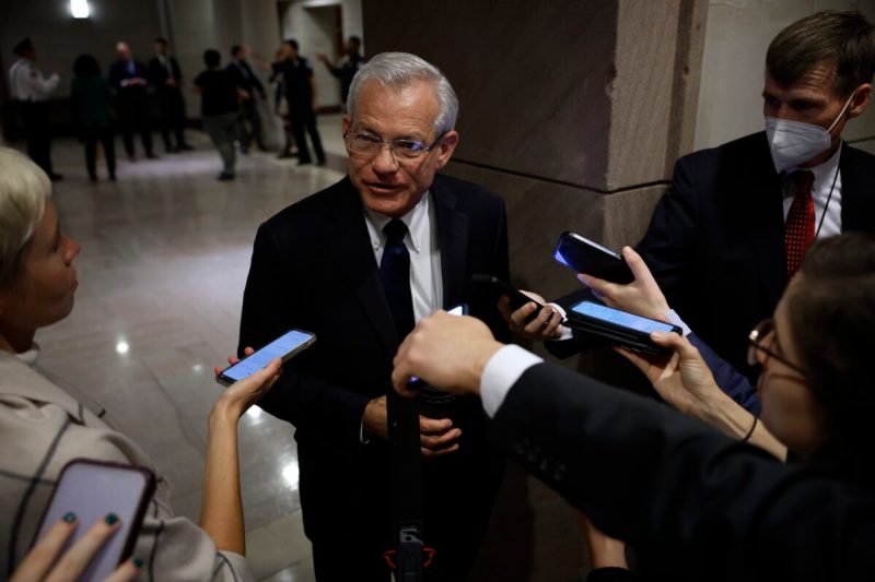 WASHINGTON, DC – NOVEMBER 14: Rep. David Schweikert (R-AZ) talks to reporters as he heads for a House Republican Caucus meeting at the U.S. Capitol Building on November 14, 2022 in Washington, DC. Tomorrow House Republicans will hold elections for leadership positions for the 118th congress. (Photo by Chip Somodevilla/Getty Images News)