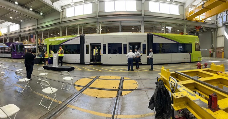 Valley Metro on Monday unveiled the first streetcar vehicle to arrive from Brookville, Pennsylvania, where it was manufactured.