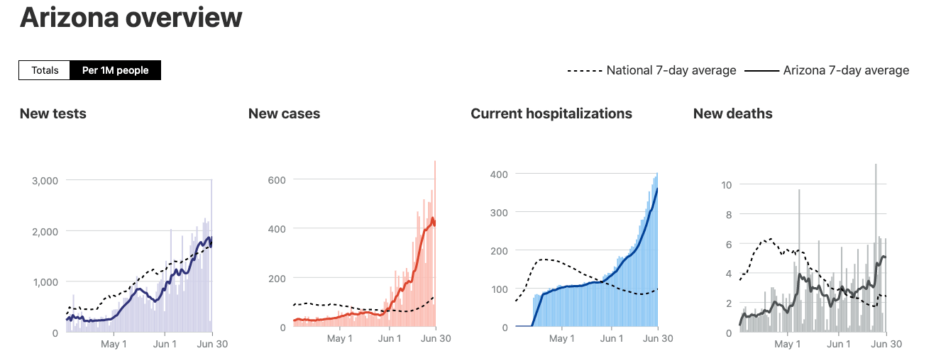 While multiple states have seen a spike in cases in recent weeks, the numbers are uniquely concerning in Arizona.