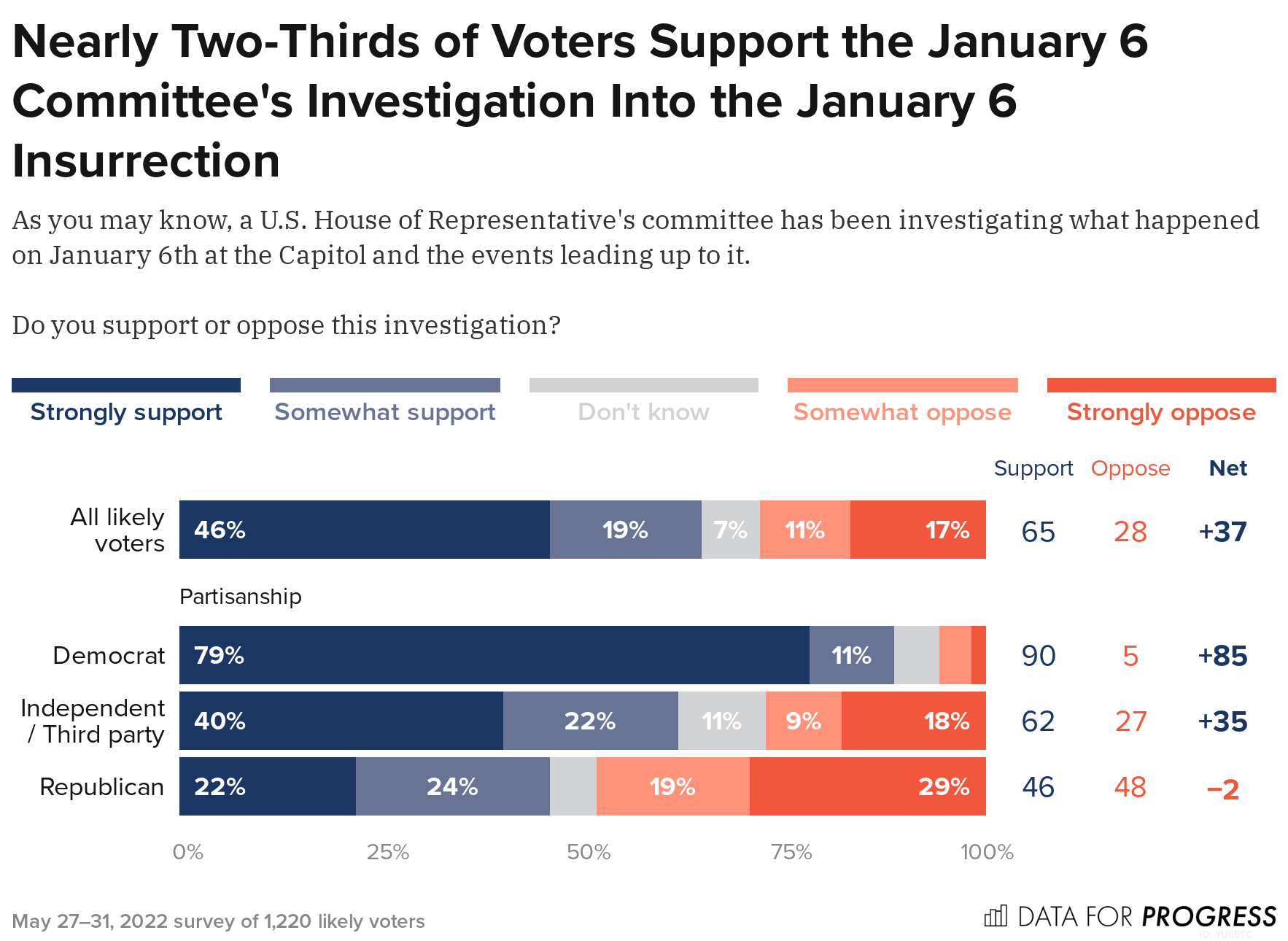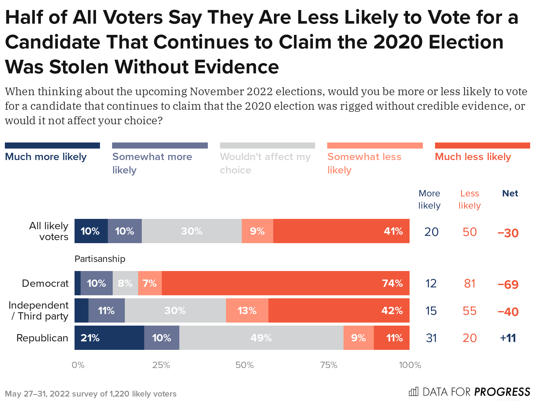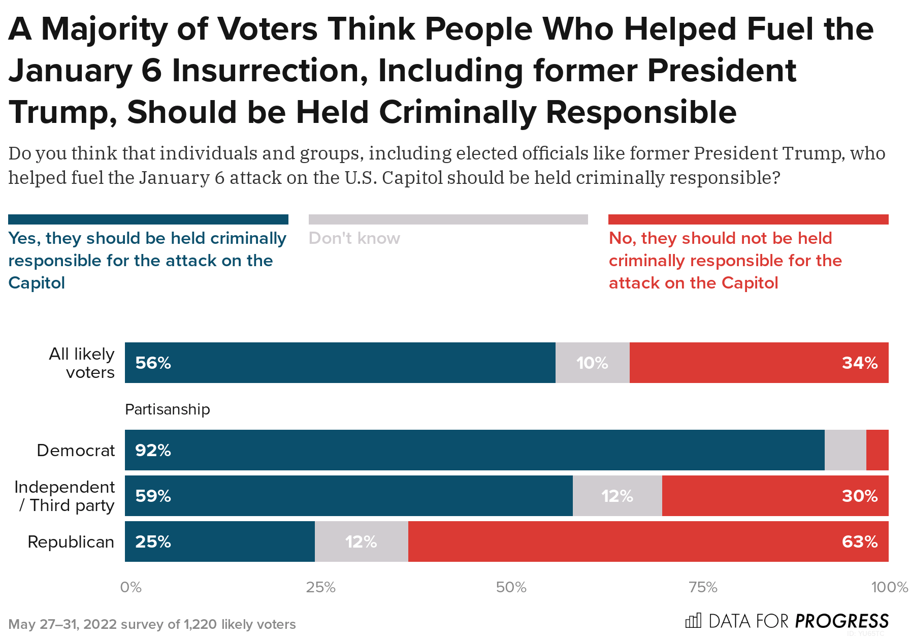 Methodology: From May 27 to 31, 2022, Data for Progress conducted a survey of 1,220 likely voters nationally using web panel respondents. The sample was weighted to be representative of likely voters by age, gender, education, race, and voting history. The survey was conducted in English. The margin of error is ±3 percentage points. N=1,220 unless otherwise specified. Some values may not add up to 100 due to rounding.