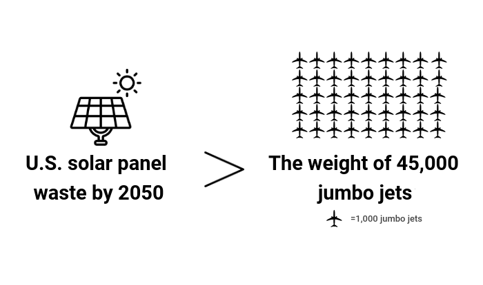 In a joint report, the International Renewable Energy Agency and the International Energy Agency Photovoltaic Power Systems Programme predicted the United States will create up to 10 million tons of solar-panel waste by 2050. That’s the weight of more than 45,000 jumbo jets.