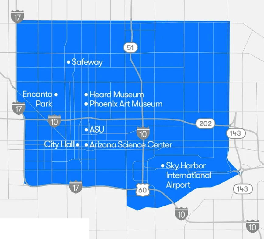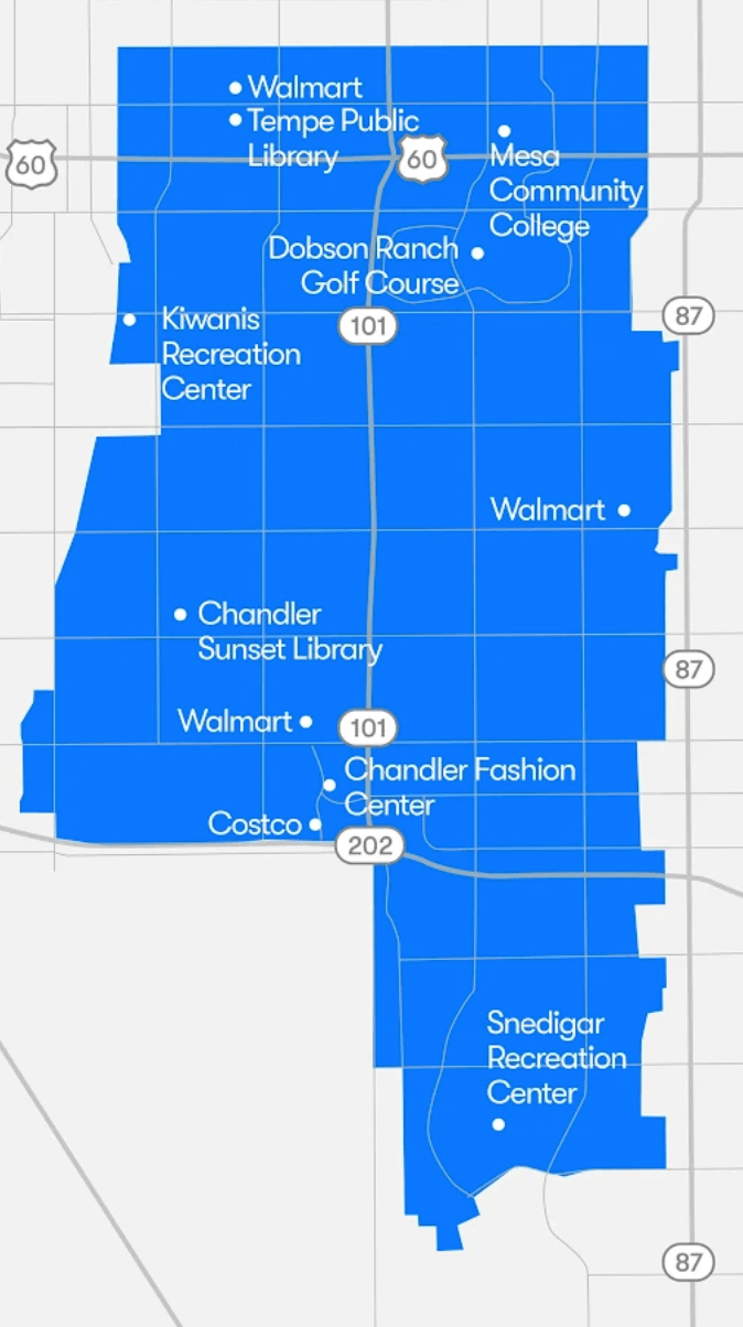 The service operates in two regions in the Valley: a select area of downtown Phoenix and a bigger section of the East Valley.