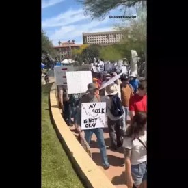 Thousands of people marched from the Arizona State Capitol to the Sandra Day O’Connor United States Courthouse in downtown Phoenix, in a “May Day” rally, marking opposition to Trump administration policies negatively affecting workers, and his actions against minority groups.